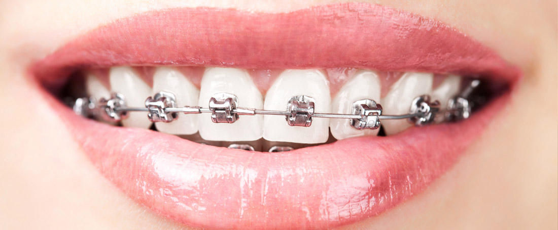 schönes Lächeln, gerade Zähne oder Zahnspangen bei Zahnfehlstellungen