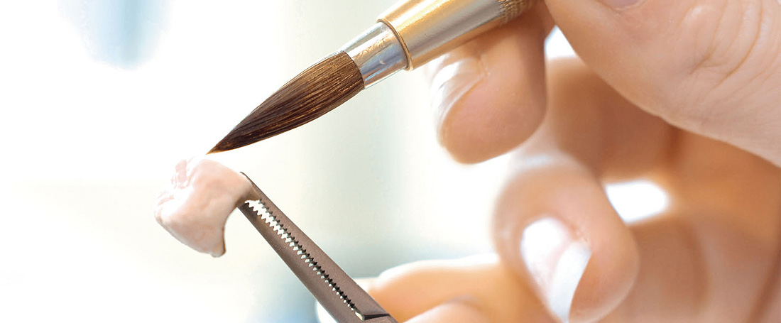 Dieses englische Wort bedeutet »Furnier« oder »Fassade«. Solche Veneers überdecken Verfärbungen, Risse, abgebrochene Stücke und kleinere Fehlstellungen.